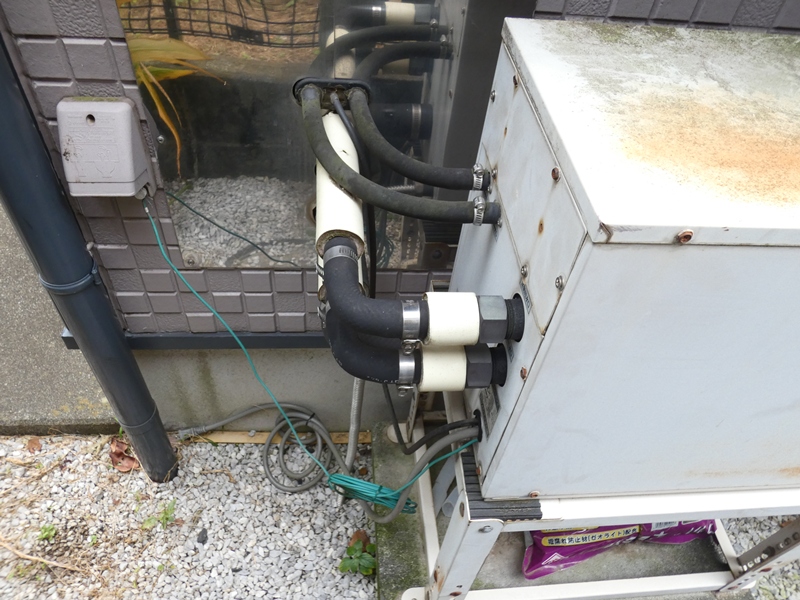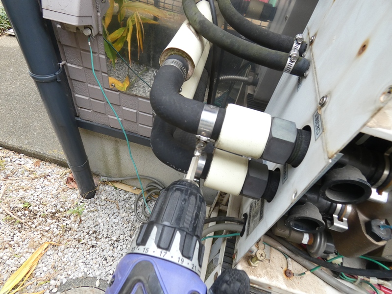濾過ポンプ迂回用のポートが出ています。このままではお湯が