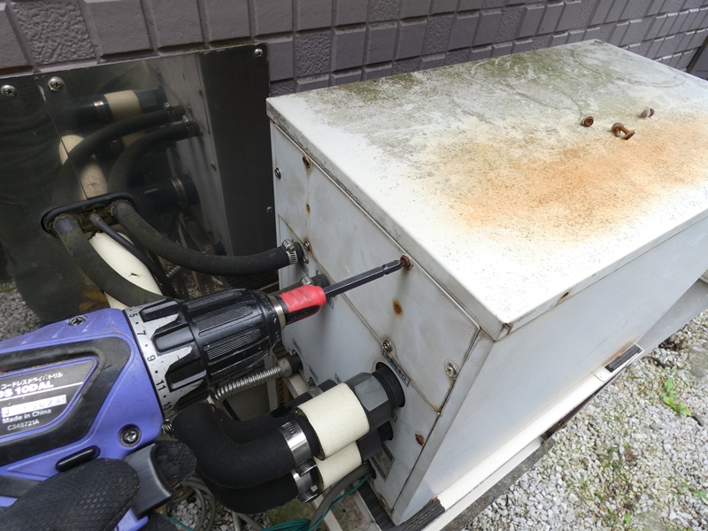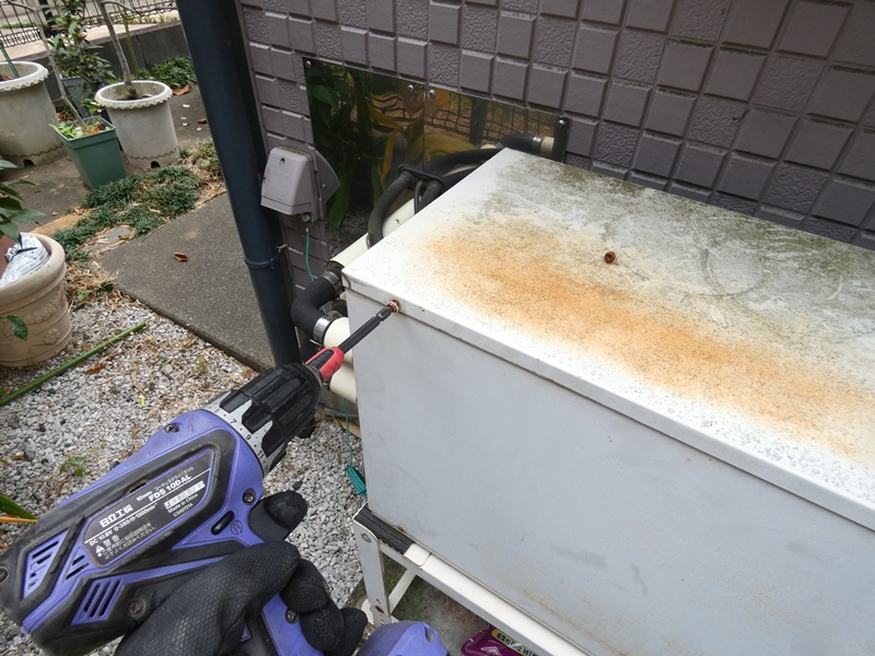 出向きます。室外機を元の架台に載せ、高さ調整ボルトで