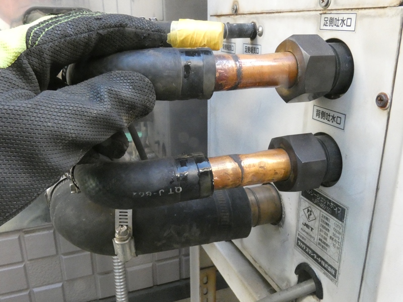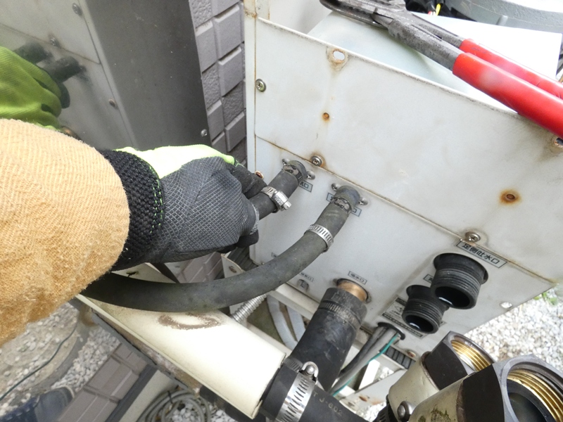 まだ大事な作業が残っています。吐出側・吸水側いずれにも