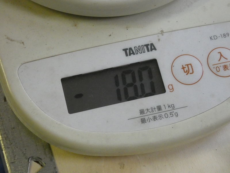 充填量僅か18gを正確に計量するのは何とも厄介です。